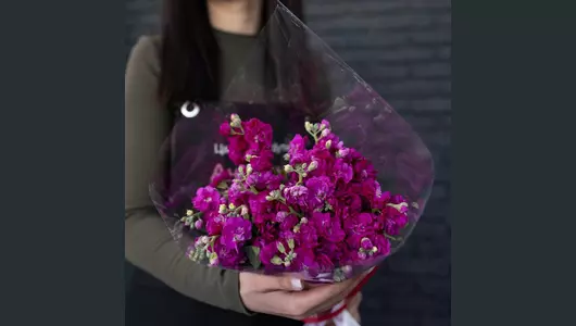 Представьте себе букет, который словно создан для того, чтобы выразить самые глубокие чувства и эмоции. Пять изысканных фиолетовых маттиол, каждая из которых олицетворяет собой загадочность и утонченность, собраны вместе в единую композицию, которая поражает своей красотой и элегантностью. Эти цветы, известные своим чарующим ароматом, создадут атмосферу романтики и уюта, наполнив пространство нежными нотками лета. Букет может быть дополнен упаковкой из прозрачной или матовой пленки, что придаст ему завершенный вид и добавит немного роскоши. Прозрачная пленка позволит насладиться всей красотой цветов, тогда как матовая создаст ощущение таинственности и глубины. А если вы хотите сделать подарок еще более особенным, добавьте к букету коробку конфет. Сладости станут приятным дополнением, которое обязательно порадует получателя и сделает момент вручения незабываемым. Этот букет идеально подойдет для любого случая – будь то день рождения, юбилей, свидание или просто желание порадовать близкого человека. Он не только украсит интерьер, но и подарит массу положительных эмоций, напоминая о самых светлых моментах жизни.