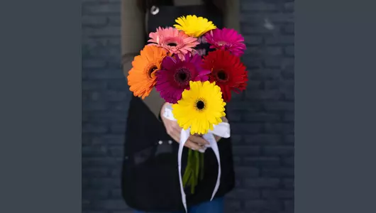 Рады представить вам уникальный букет из 7 ярких гербер, который станет идеальным подарком к любому празднику – будь то 8 марта, день рождения, годовщина или любое другое торжество. Наши цветы уникальны своим качеством и свежестью, благодаря чему они радуют глаз и дарят радость долгое время. Дополнительно к букету можно заказать матовую или прозрачную пленку для упаковки, чтобы подчеркнуть его утонченность и красоту. Мы гарантируем оперативную доставку букета в удобное для вас время, чтобы вы смогли порадовать близких важным моментом именно в нужный момент. Наша команда ценит каждого клиента и стремится обеспечить ему теплое и заботливое отношение, позволяя каждому чувствовать себя особенным.