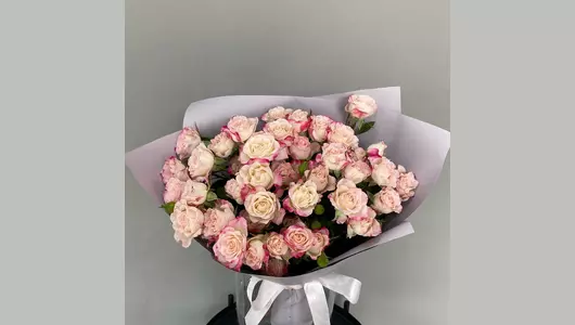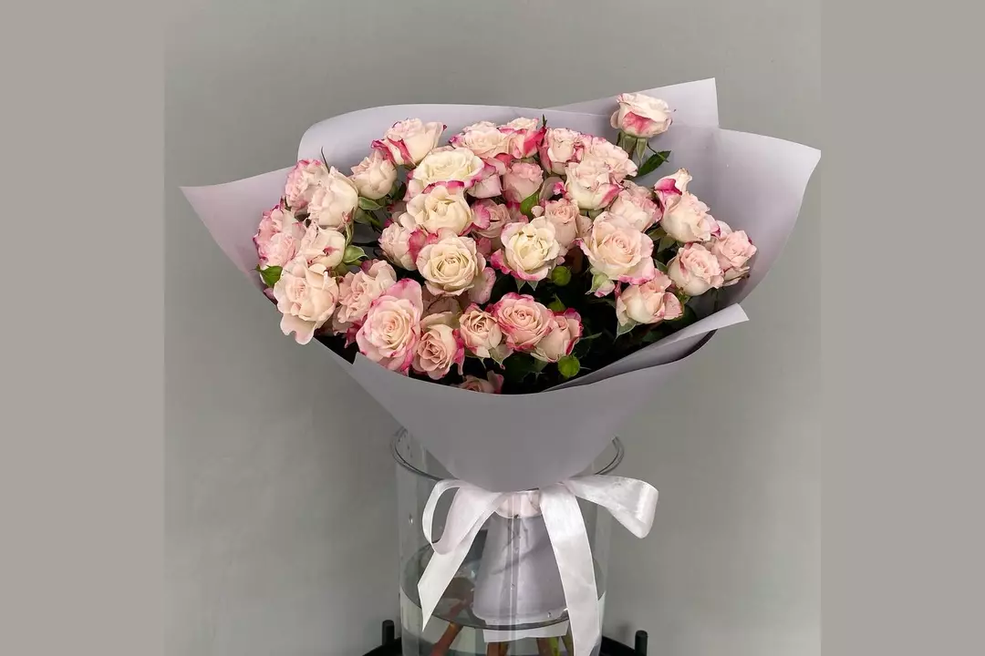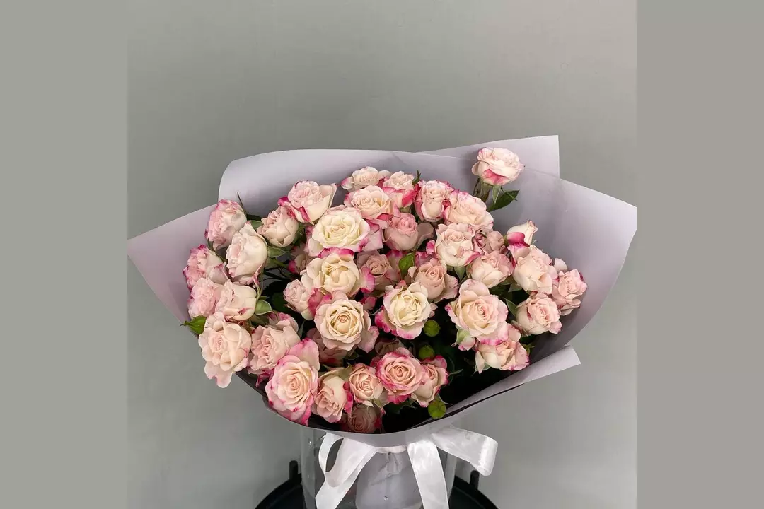Букет из 7 кустовых роз в упаковке. Он станет прекрасным подарком на день рождения, годовщину, свадьбу или просто чтобы порадовать близкого человека без повода.