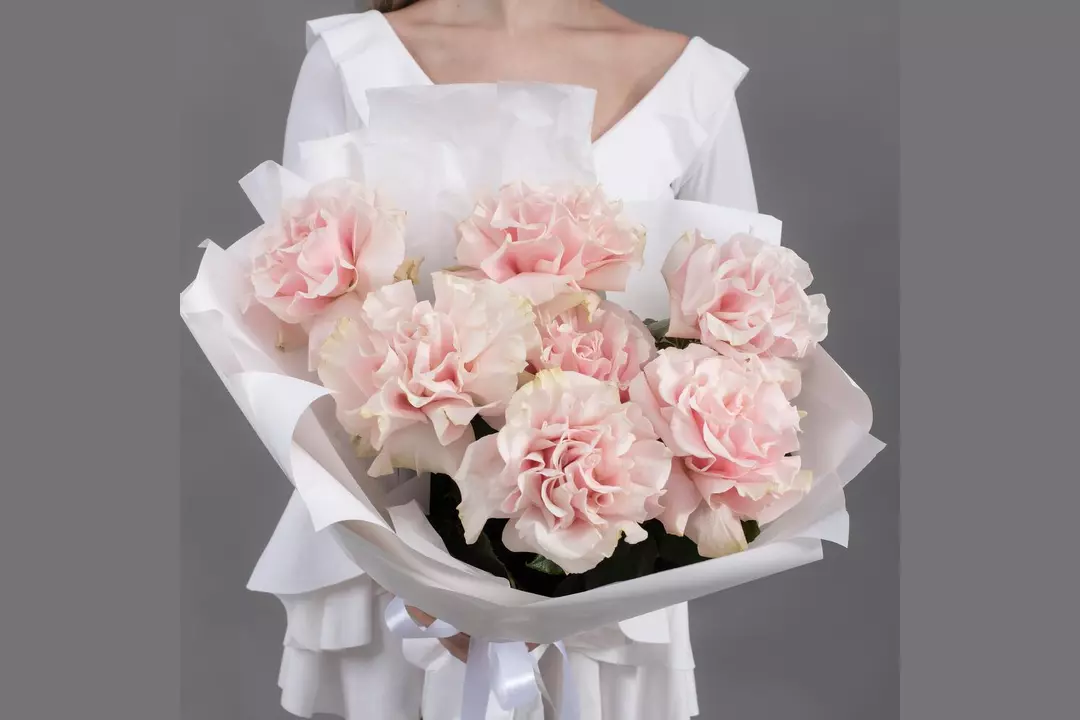 Состав Упаковка дизайнерская - 5 шт. Французская роза - 7 шт. Размер Ширина - 33 см Высота - 55 см Букет из 7 розовых французских роз — элегантный и универсальный подарок, который подойдёт для романтического свидания, дня рождения или другого торжественного события. Французские розы отличаются пышными бутонами с вывернутыми лепестками, что придаёт композиции объём и изысканность. Розовый оттенок символизирует нежность, любовь и восхищение.