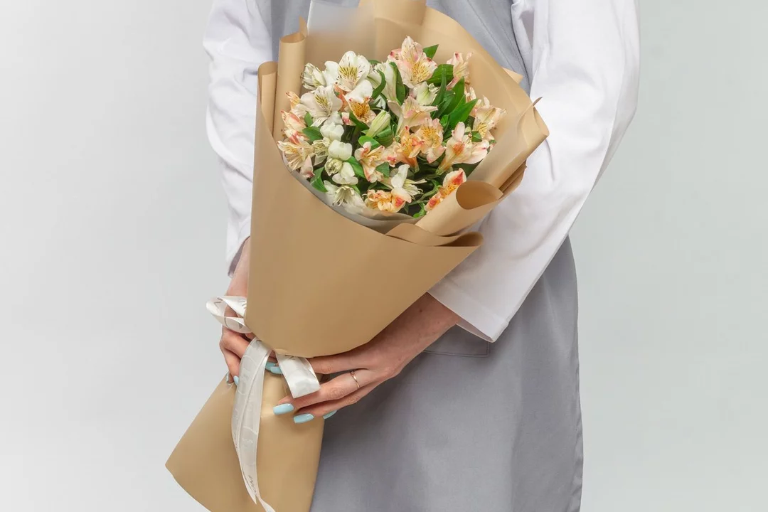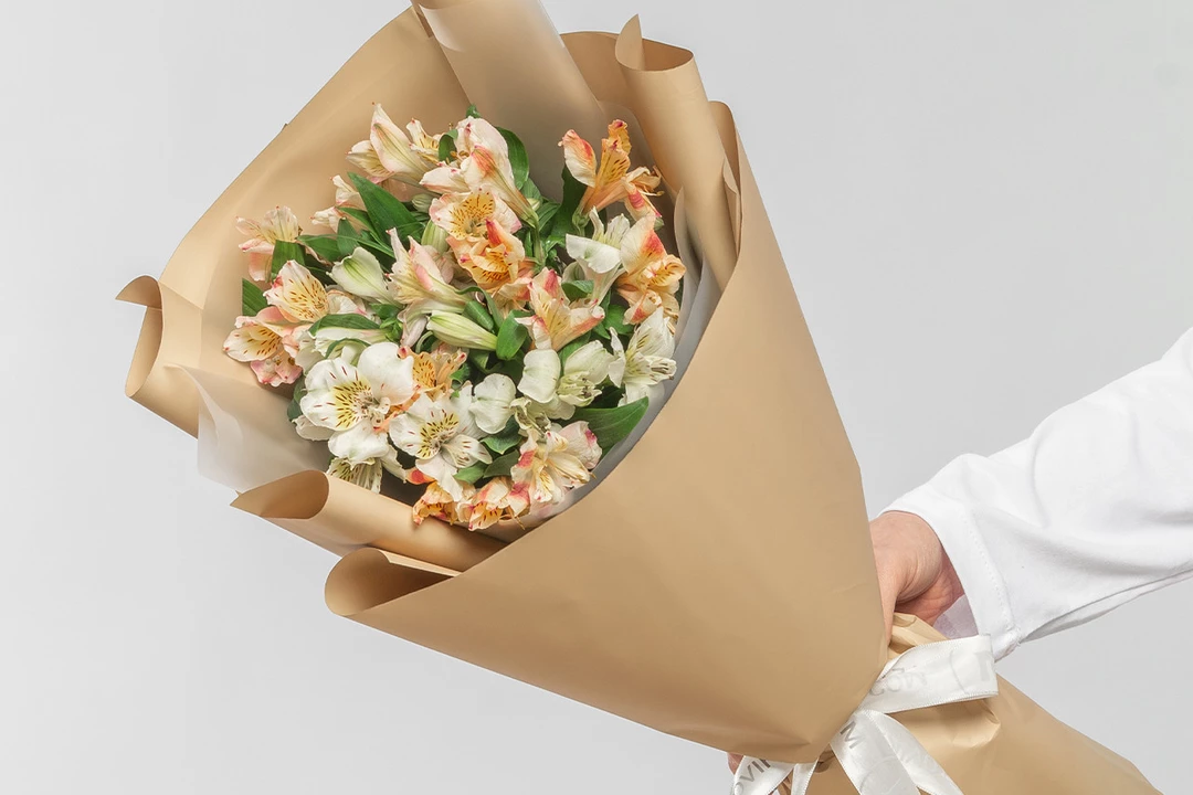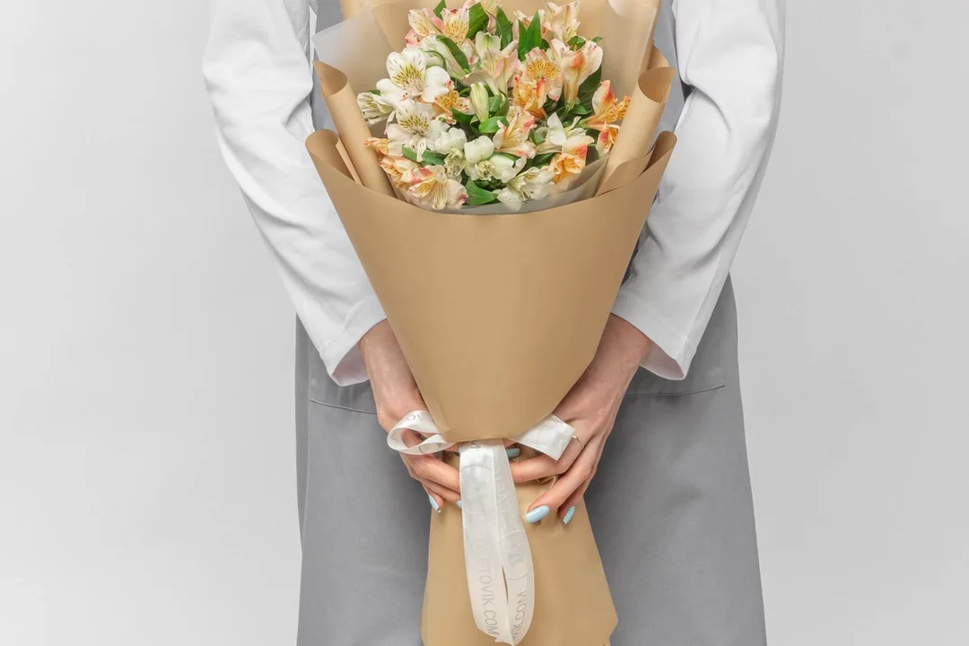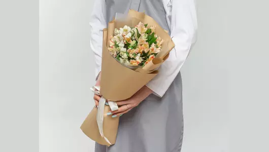 Состав: альстромерия 9 шт., лента атласная 1 шт., оформление