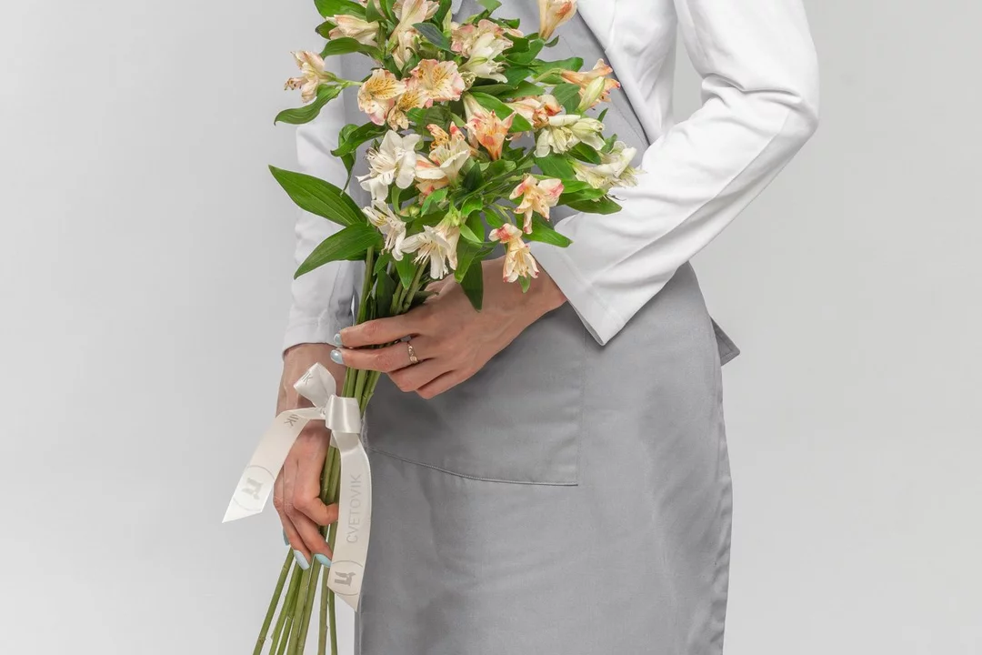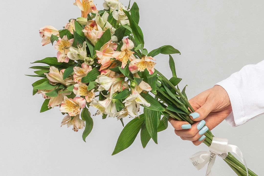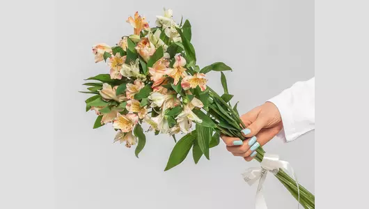 Состав: альстромерия 9 шт., лента атласная 1 шт.