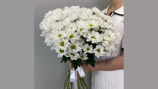Букет из белой кустовой хризантемы под ленту FMART by flowwow