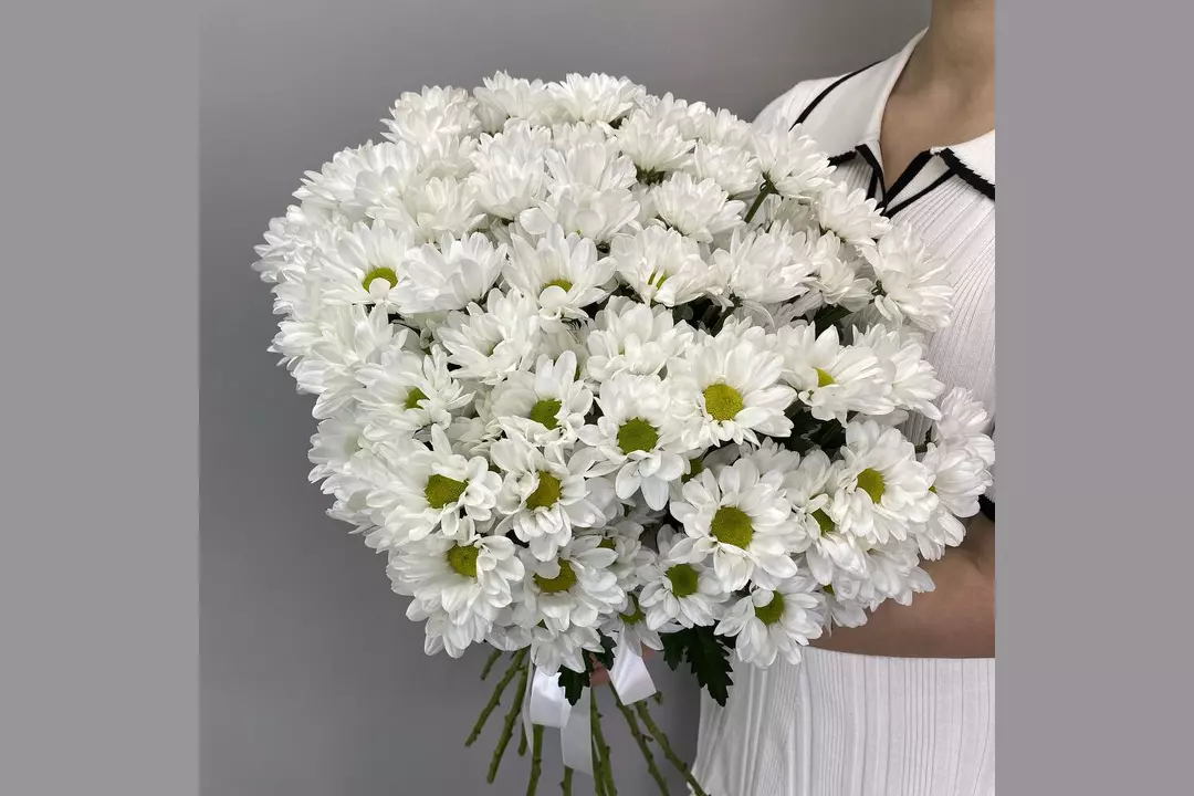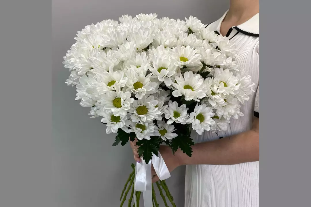 Пышный букет из белых кустовых хризантем под ленту. Он станет прекрасным подарком на день рождения, годовщину, свадьбу или просто чтобы порадовать близкого человека без повода. 💐 Что внутри: Каждый букет уникален и подбирается в соответствии с сезоном, наличием цветов и пожеланиями заказчика. Если нужно дополнить букет чем-то еще, кроме цветов, можно рассмотреть варианты, такие как сладости, мягкие игрушки, открытки или воздушные шары. 🎁 Оформление: Стильная упаковка, лента в тон и открытка с вашим пожеланием. Так же набор ухода за цветами.