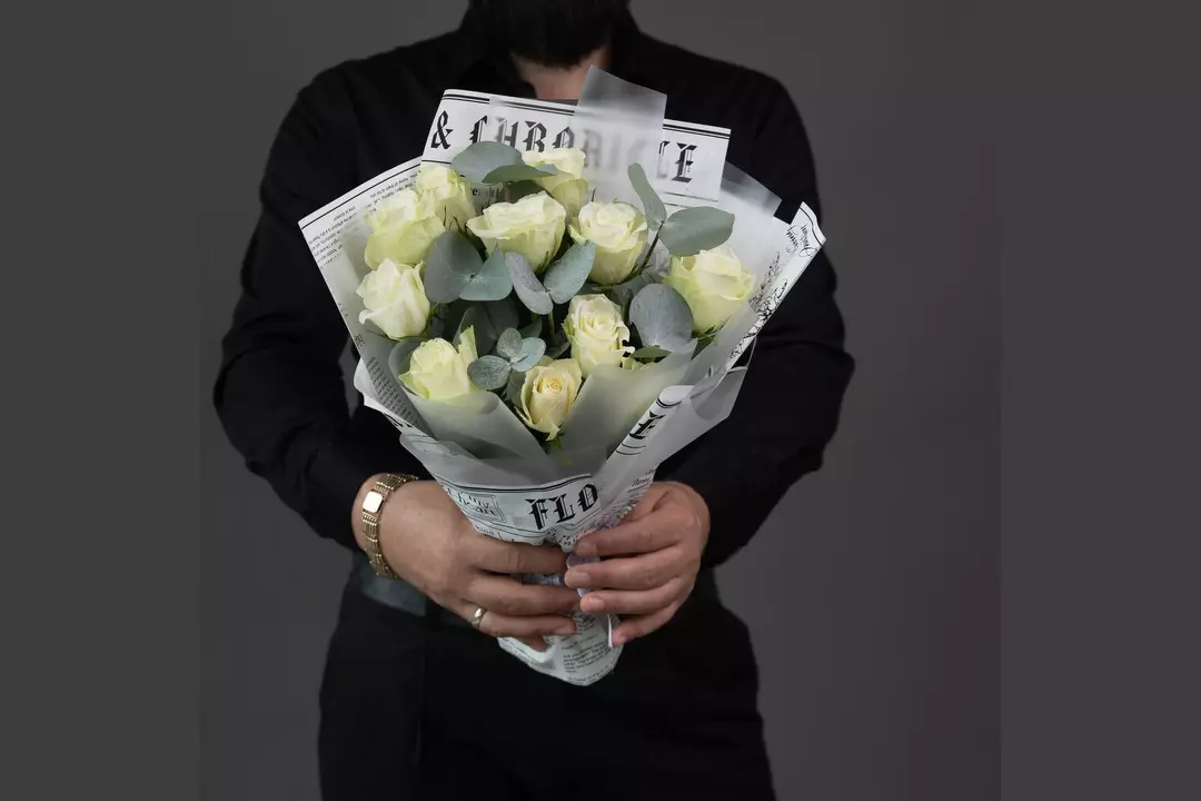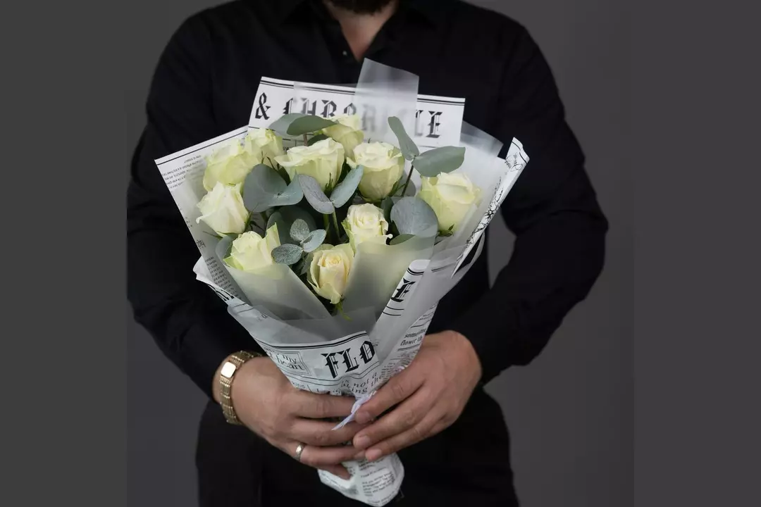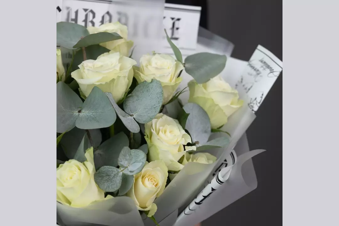 Великолепный букет из 11 изысканных белых роз акуна и душистого эвкалипта - воплощение элегантности и изысканности. Этот букет является настоящим произведением искусства, созданным нашими опытными флористами с любовью и теплом. Наш цветочный бутик специализируется на предоставлении цветов premium качества, поэтому Вы можете быть уверены, что каждый бутон в этом букете будет свежим, ярким и прекрасным. Мы ценим каждого нашего клиента и гарантируем оперативную доставку, чтобы помочь вам выразить свои чувства и эмоции в самое подходящее время. Этот букет отлично подойдет к любому торжественному событию - от празднования 8 марта до дня рождения или годовщины. Он является классическим и стильным вариантом подарка, который не оставит равнодушной ни одну женщину. Подарите этот уникальный букет и дарите красоту и удовольствие вашим близким с нашим теплым и заботливым отношением к каждому клиенту.