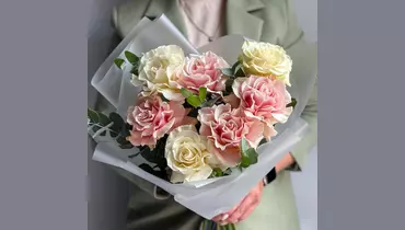 Букет из белых и розовых Французских роз подойдёт для любого повода. Этот букет состоит из самых свежих и красивых цветов, такой подарок обязательно оценит получатель! Состав букета: Роза Французская - 7 шт. Эвкалипт - 1 шт. Упаковка дизайнерская - 1 шт. Размеры: Ширина - 30 см Высота - 50 см