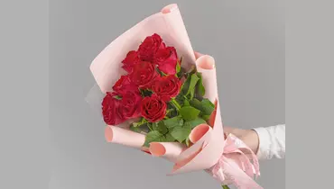 Состав: роза кенийская -9 шт, пленка - 2шт, лента -1шт