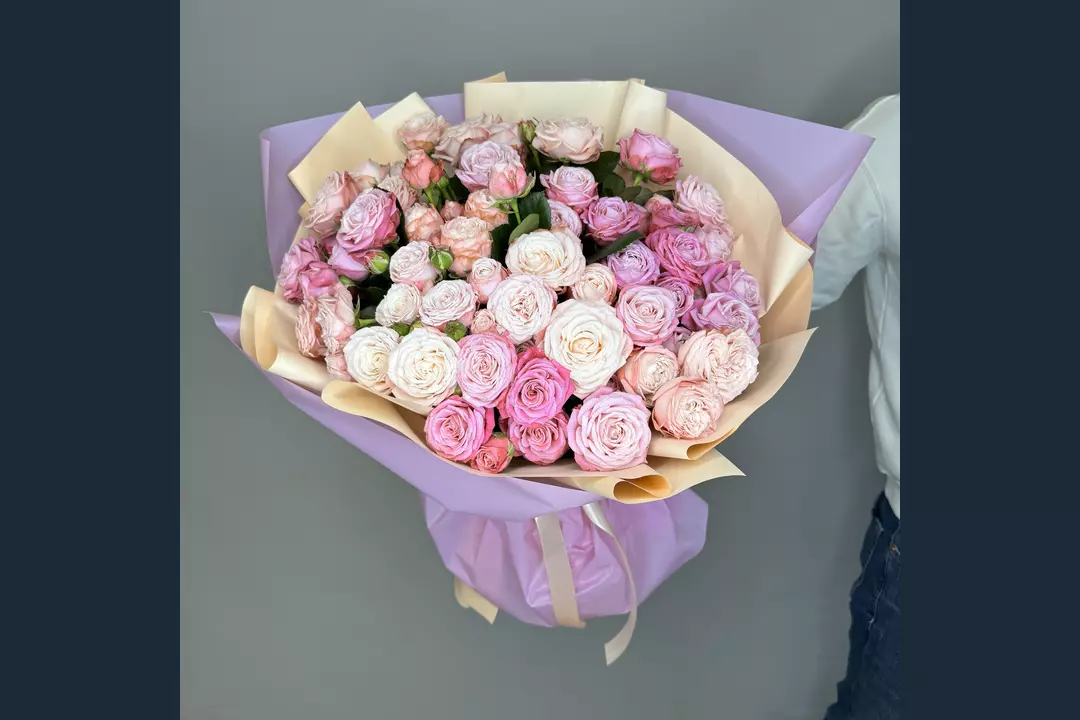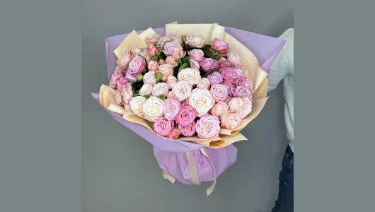Пышный букет из премиум кустовых пионовидных роз