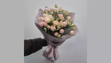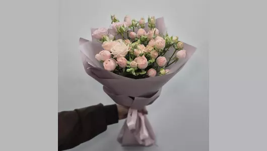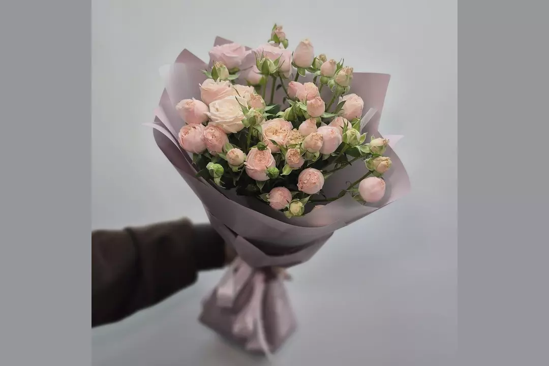Роскошный букет из 5 веток кустовой розы Бомбастик — пышное облако нежно-розовых бутонов. На каждом стебле 4–7 изящных цветков, создающих объёмную композицию высотой 40–50 см. Бархатистые лепестки источают тонкий аромат, а букет долго сохраняет свежесть. Идеален для подарка и украшения торжества. Состав Роза кустовая - 5 шт Упаковка дизайнерская - 1 шт