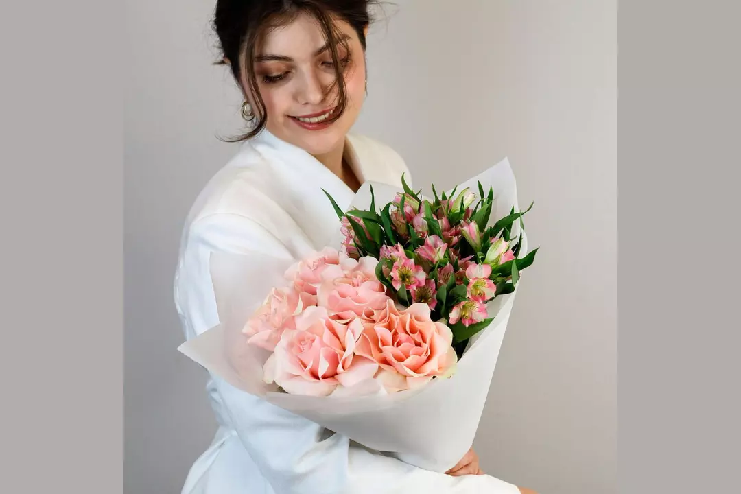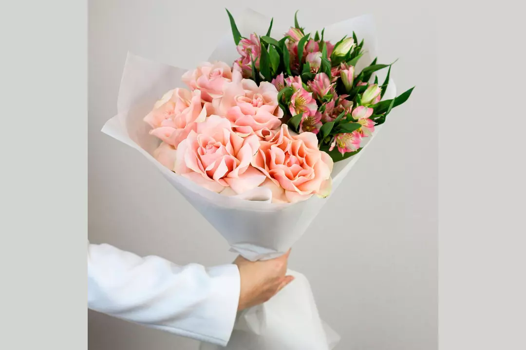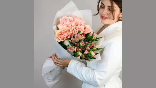 У этого букета есть потрясающая способность — он вызывает улыбки, дарит приятные эмоции и помогает красиво выразить чувства. Проверено! 🌷 Чтобы цветы радовали как можно дольше 🌷: * Обновите срез секатором или острым ножом на 1 см под углом 45 градусов. * Поставьте цветы в отстоянную воду комнатной температуры. * Меняйте воду каждый день и обновляйте срез раз в 1–2 дня. * Убирайте нижние листья, чтобы они не касались воды. * Срезайте увядшие бутоны. * Держите цветы подальше от фруктов, сквозняков, прямых солнечных лучей, источников тепла (батареи, настольные лампы, кипящий чайник). Состав Альстромерия - 4 шт. Лента атласная - 1 шт. Упаковка дизайнерская - 1 шт. Роза французская - 5 шт.