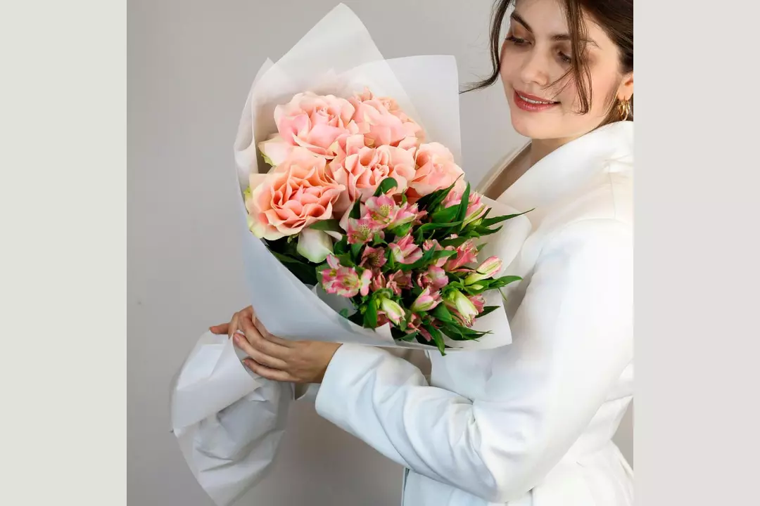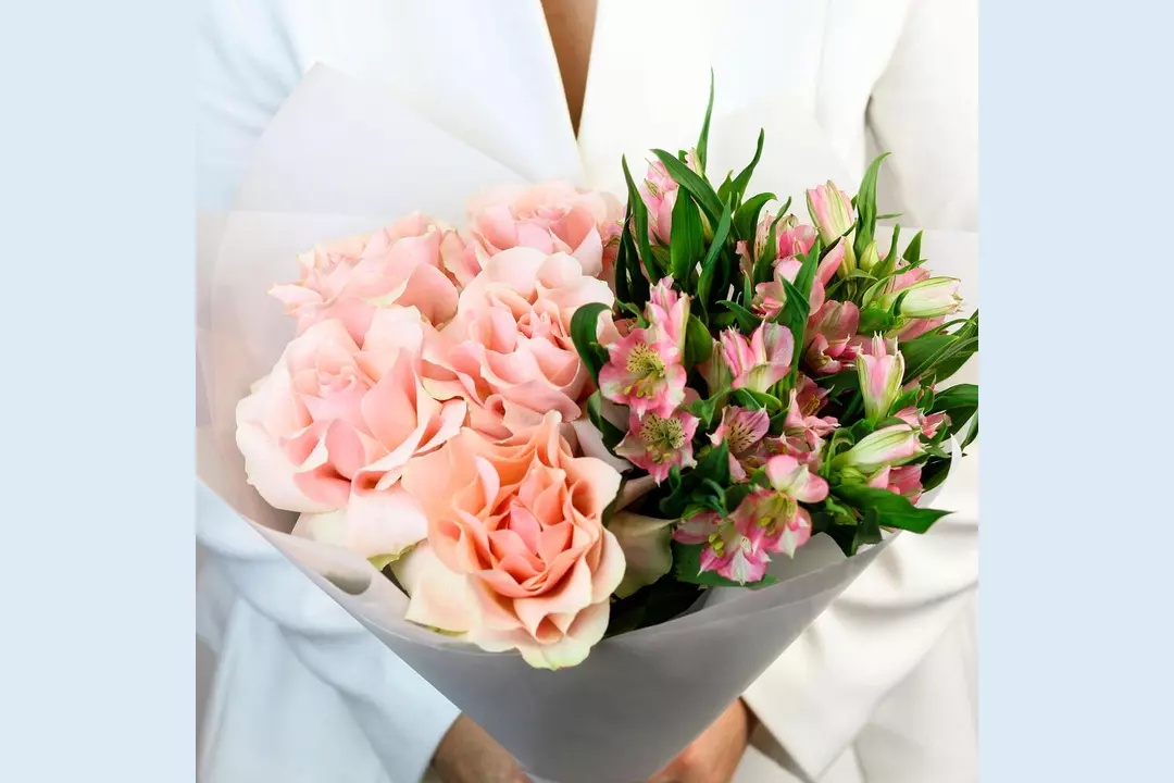 Букет из роз и альстромерии «Французский поцелуй» FMART by flowwow