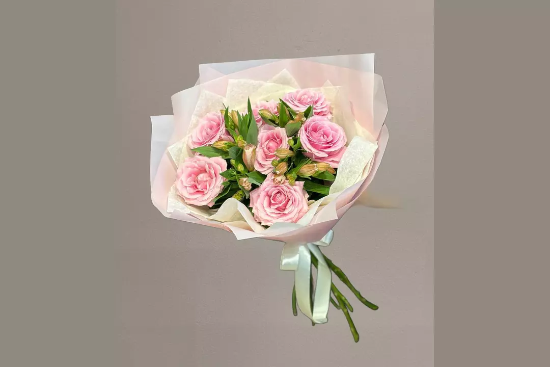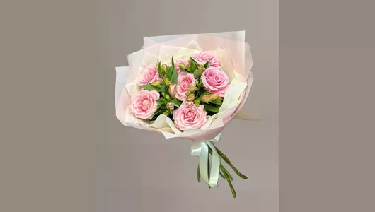 Букет нежных роз и альстромерий. Состав - роза 7 шт. Альстромерия 4 шт.