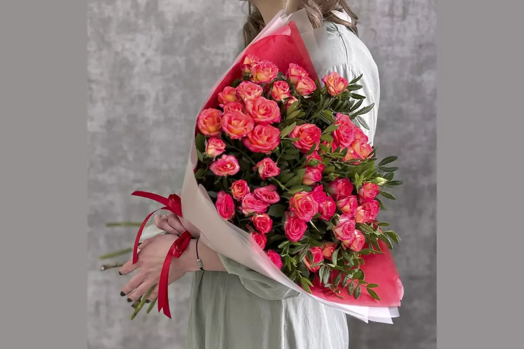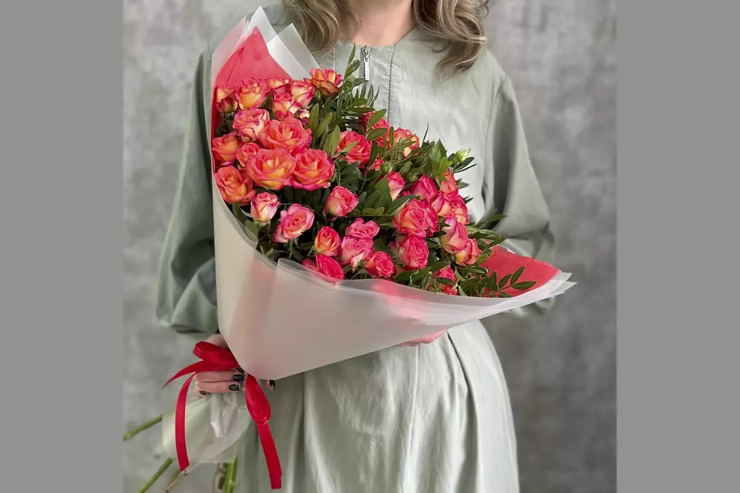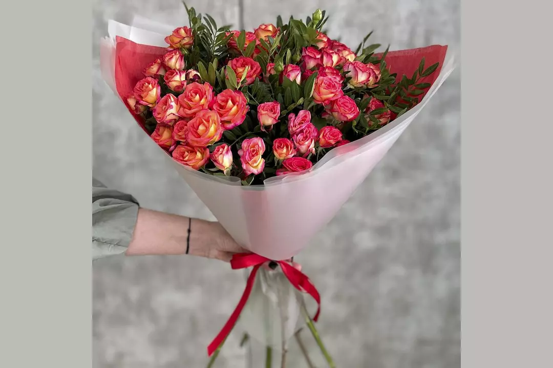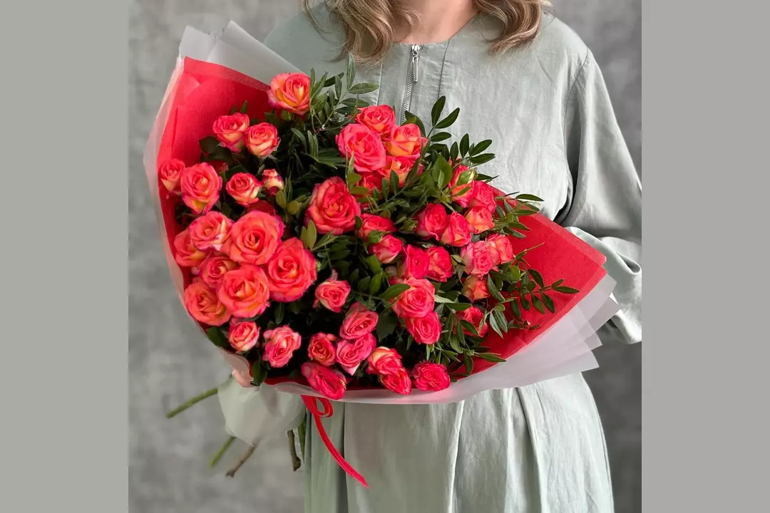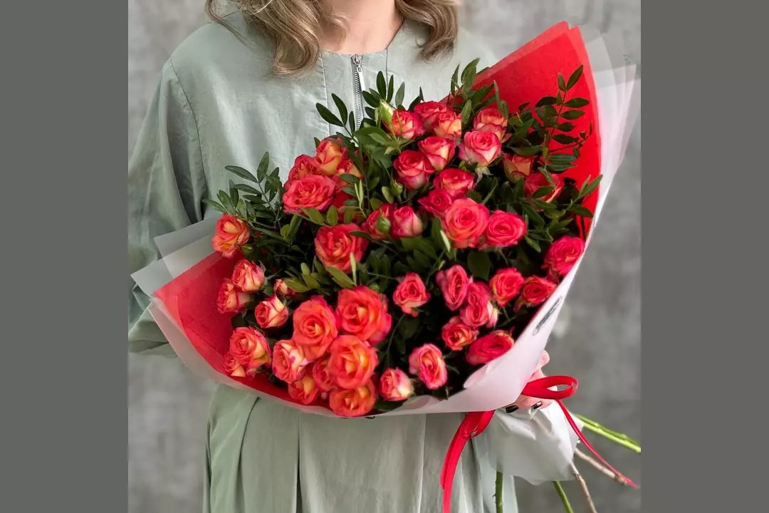 Букет Красно-желтые кустовые розы FMART by flowwow
