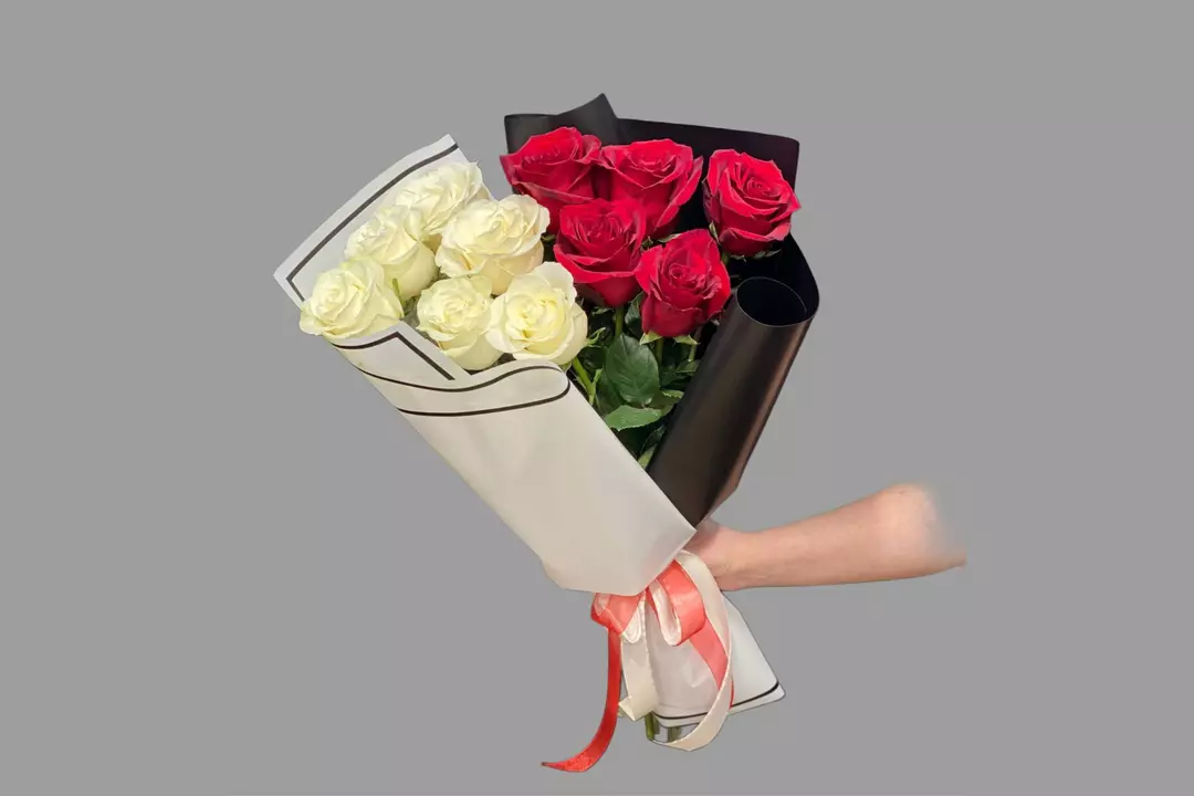 Букет Эквадорских роз красных и белых. Состав - роза 11 шт. Упаковка 2 шт