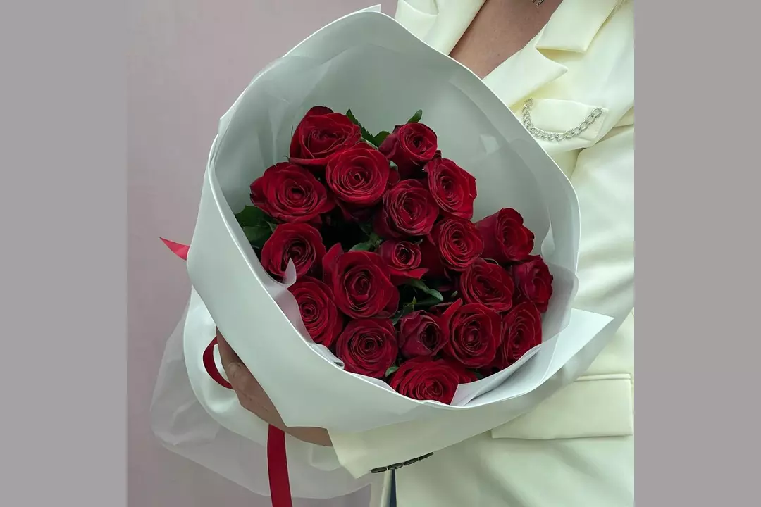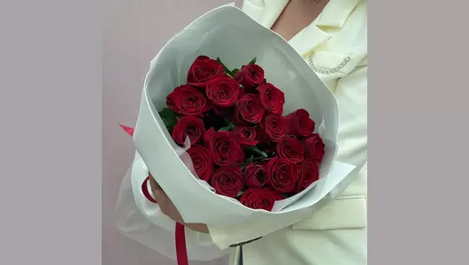 Букет красных роз 19 штук в стильной упаковке FMART by flowwow