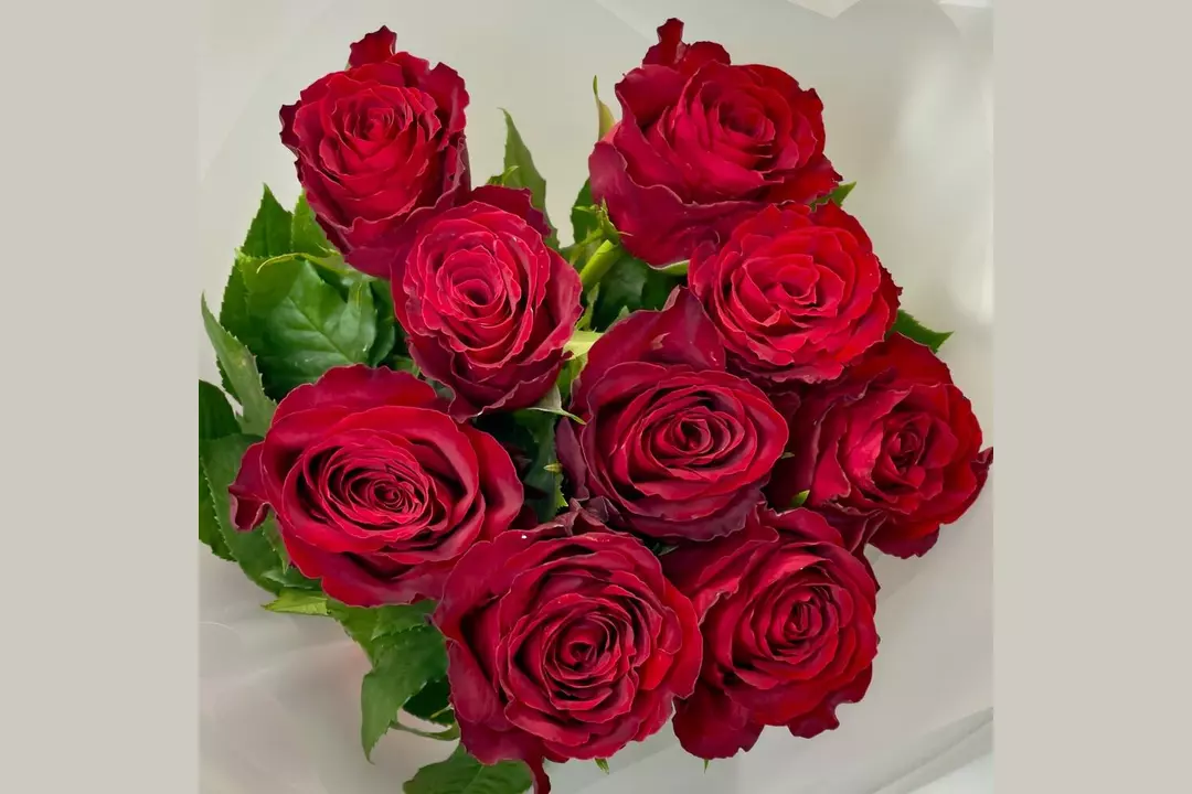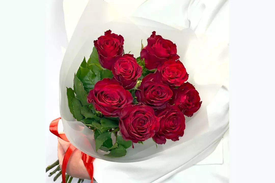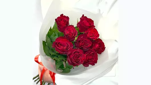 Букет красных роз - значение символики. Красные розы являются синонимом любви и нежности. Эти красивые цветы веками использовались для выражения чувств романтики. Вечная классика красная роза 9 штук в воздушной упаковке Состав: Роза 9 шт, Лента 1 шт, Упаковка 5 шт