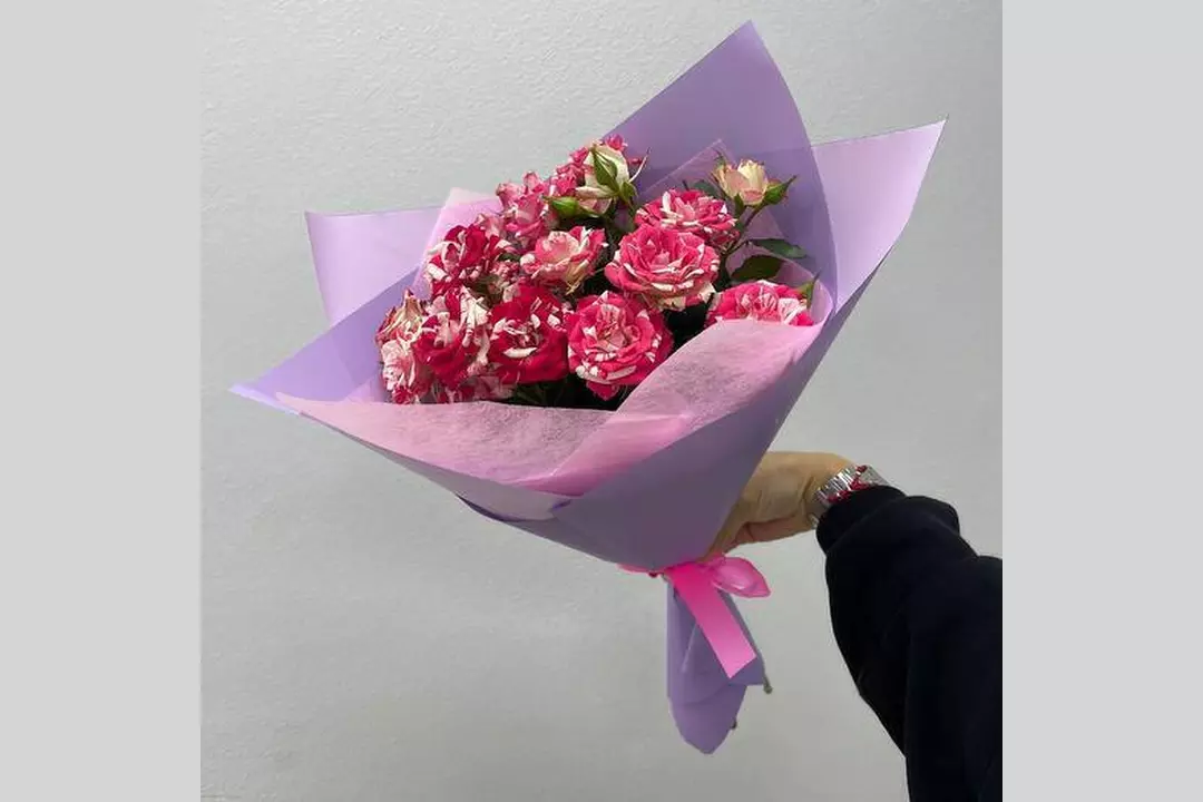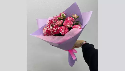 Мини букет из розовой кустовой розы в упаковке Человек, с букетом розовых роз показывает свою симпатию, нежные чувства, свои благородные намерения и восхищение. Чтобы выразить свою симпатию, стоит выбирать розы нежно-розового цвета, а чтобы выразить благодарность - насыщенного розового цвета. Благодаря уникальному цвету роз, букет выражает и симпатию и благодарность Такой букет можно подарить женщине, чтобы поблагодарить и выразить свою признательность. Поэтому розовые розы хорошо подойдут для подарка коллегам, деловым партнерам, спонсорам. Розовые розы универсальны для вручения в виде жестов благодарности или подарка на знаменательные события.