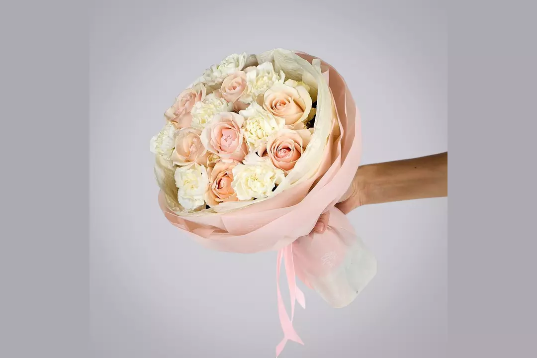 Букет “Нежность утра” сочетает в себе утончённость, мягкость и лёгкое очарование. Персиковые розы создают тёплый акцент, наполняя букет спокойной и мягкой энергетикой. Светлые гвоздики красиво подчеркивают нежность общей цветовой гаммы. Вместе цветы создают впечатление лёгкого облака, окутанного утренними бликами. Букет выглядит изысканно и при этом очень естественно. Он словно создан для того, чтобы дарить тепло и вызывать самые светлые эмоции. Сочетание оттенков делает композицию универсальной и утончённой. Такой букет подходит для любых случаев, когда хочется подчеркнуть искренность чувств. Его мягкий образ делает момент особенно трогательным. Это не просто композиция — это кусочек тёплого утра в подарок, который будет радовать и согревать сердце.