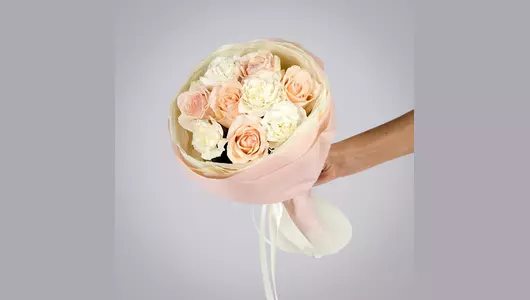 Букет “Нежность утра” S создан, чтобы приносить радость и делать утро по-настоящему добрым. Персиковые розы раскрываются плавно, словно просыпаясь вместе с новым днём. Кремовые гвоздики добавляют ощущение пушистого облака, которое обнимает всю композицию. Мягкие оттенки создают спокойную и нежную атмосферу. Букет выглядит воздушно и очень трогательно. Его форма аккуратна и гармонична, что делает его приятным во всех деталях. Такой подарок подойдёт для самых трепетных моментов — признаний, благодарности, заботливого поздравления. Мягкая цветовая гамма подчёркивает искренность намерений и внимание к деталям. “Нежность утра” S — это композиция, которая согревает душу.