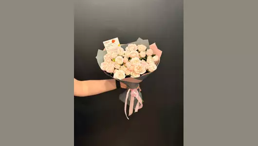 Букет кустовых пионовидных роз бомбастик. Состав - роза кустовая 9 шт. Упаковка 1 шт