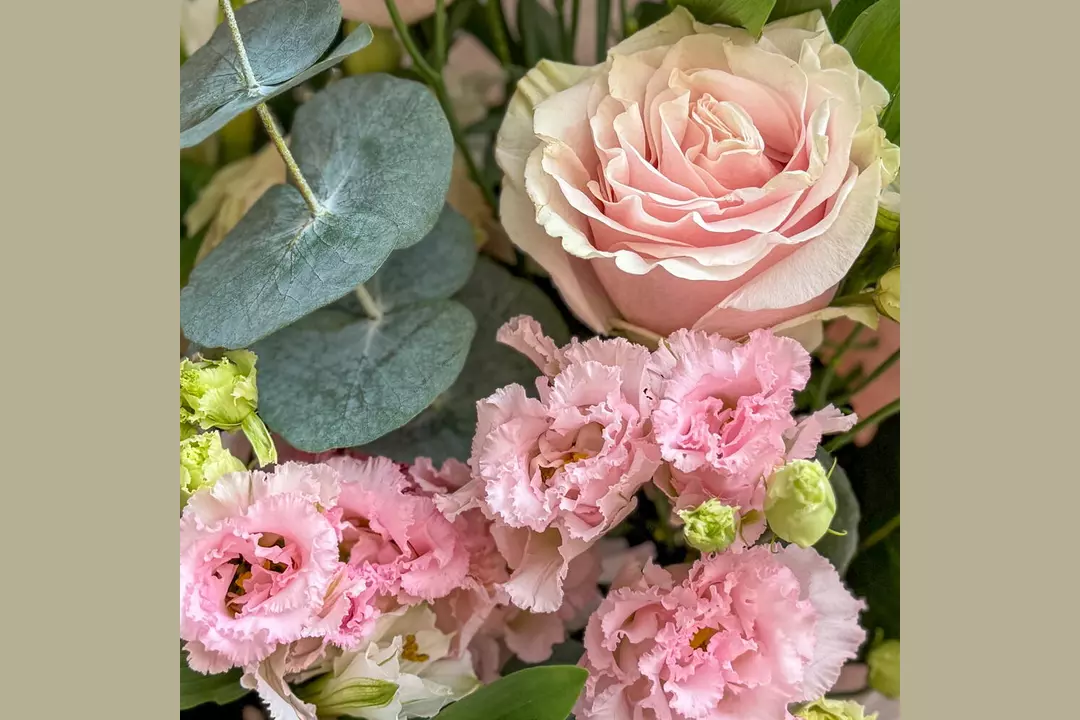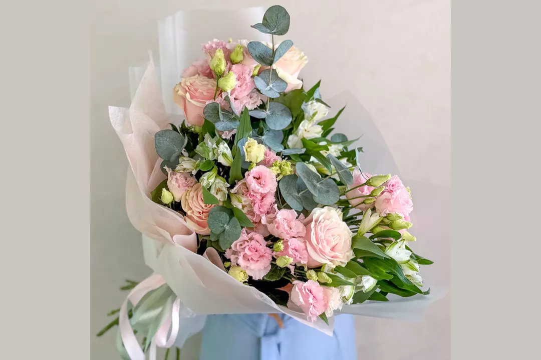 🩷Букет-признание из коллекции «Нежная любовь»🩷 Этот букет-воплощение утончённой нежности и спокойной элегантности. Пастельная палитра розовых, кремовых и белых оттенков создаёт ощущение тепла, заботы и искренних чувств. Розовые розы, розовая эустома, белая альстромерия и ароматная зелень эвкалипта собраны в гармоничную композицию, которая выглядит безупречно. Букет идеально подойдёт для тех моментов, когда хочется сказать «я рядом», «ты важна» или «я думаю о тебе»-без лишних слов, но с искренним чувством. Состав Альстромерия - 5 шт. Эвкалипт - 2 шт. Роза Эквадор - 5 шт. Эустома - 3 шт. Лента атласная - 2 шт. Упаковка дизайнерская - 1 шт.