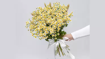 Состав: ромашка кустовая - 15шт, пшеница - 8шт, лента - шт