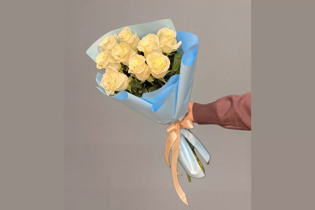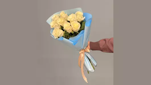 Классический букет белых Эквадорских роз. Состав - роза белая 9 шт. Упаковка 1 шт