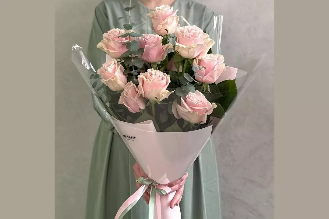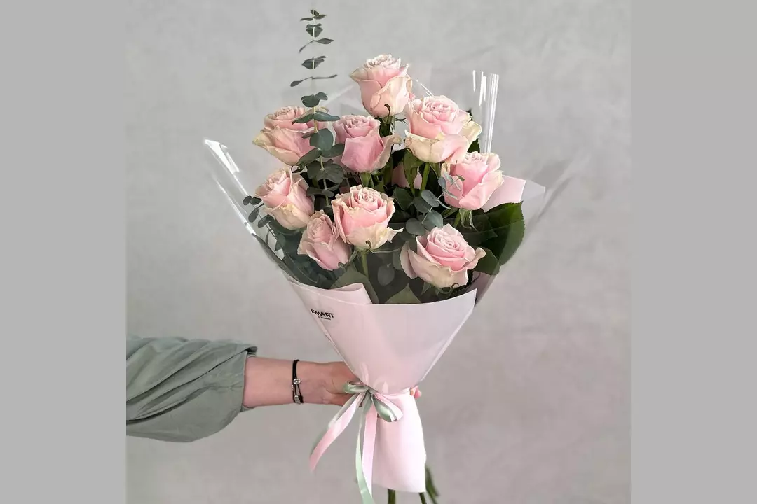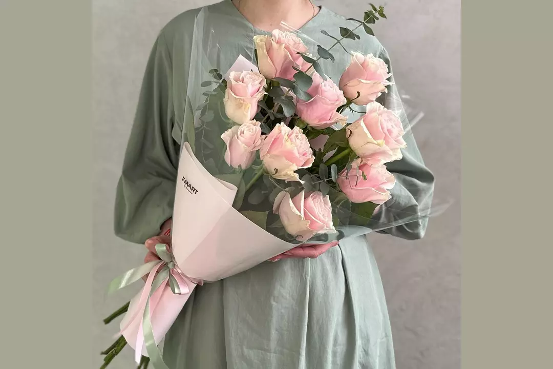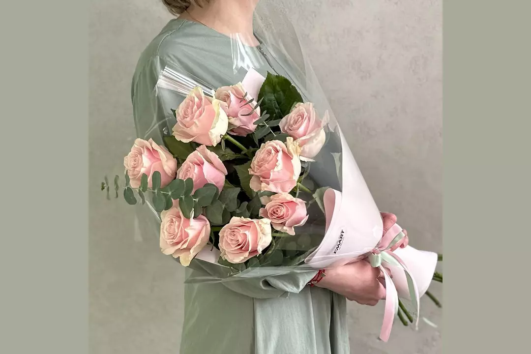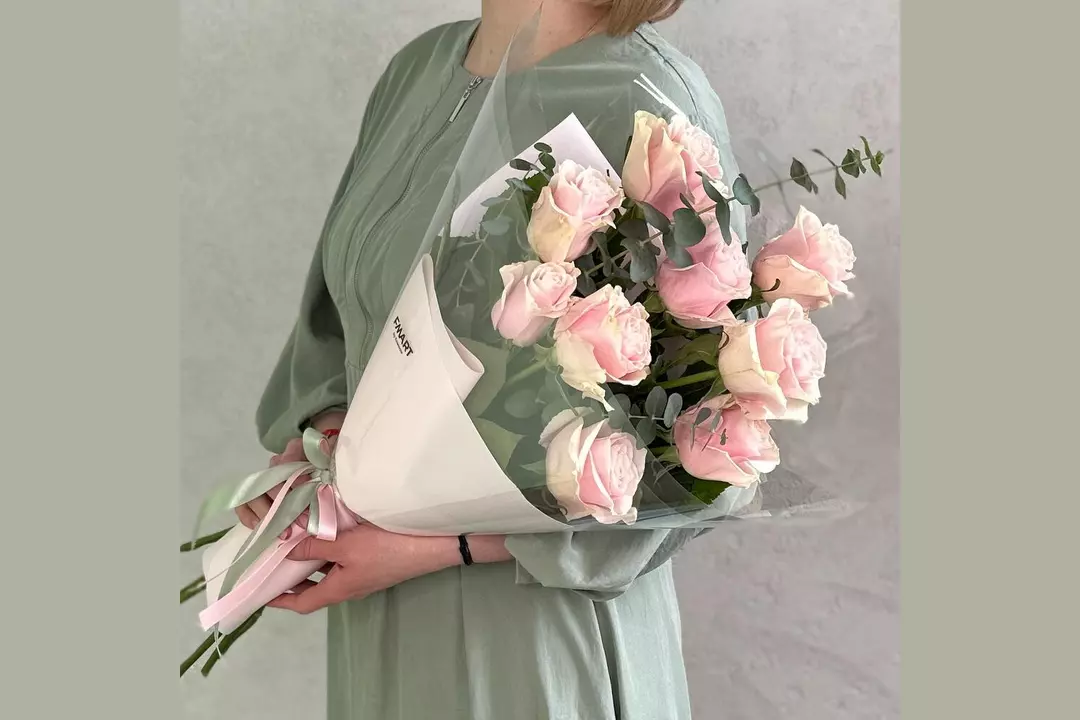 Букет Розовые розы Premium с эвкалиптом FMART by flowwow