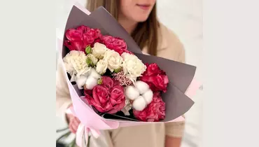 Букет в розовой гамме подойдёт для любого повода. Этот букет состоит из самых свежих и красивых цветов, такой подарок обязательно оценит получатель! Состав букета: Озотамнус - 1 шт. Роза кустовая - 1 шт. Хлопок - 2 шт. Диантус - 3 шт. Роза пионовидная - 5 шт. Упаковка дизайнерская - 1 шт. Размеры: Ширина - 27 см Высота - 50 см