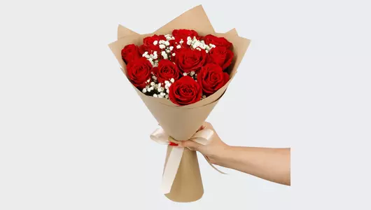 Этот букет, составленный из ярко-красных роз и белой воздушной гипсофилы, словно отражает внутренний свет человека. Прекрасный подарок для того человека, чья доброта, тепло и искренность освещают все вокруг, для благодарности, поддержки или просто как знак восхищения.