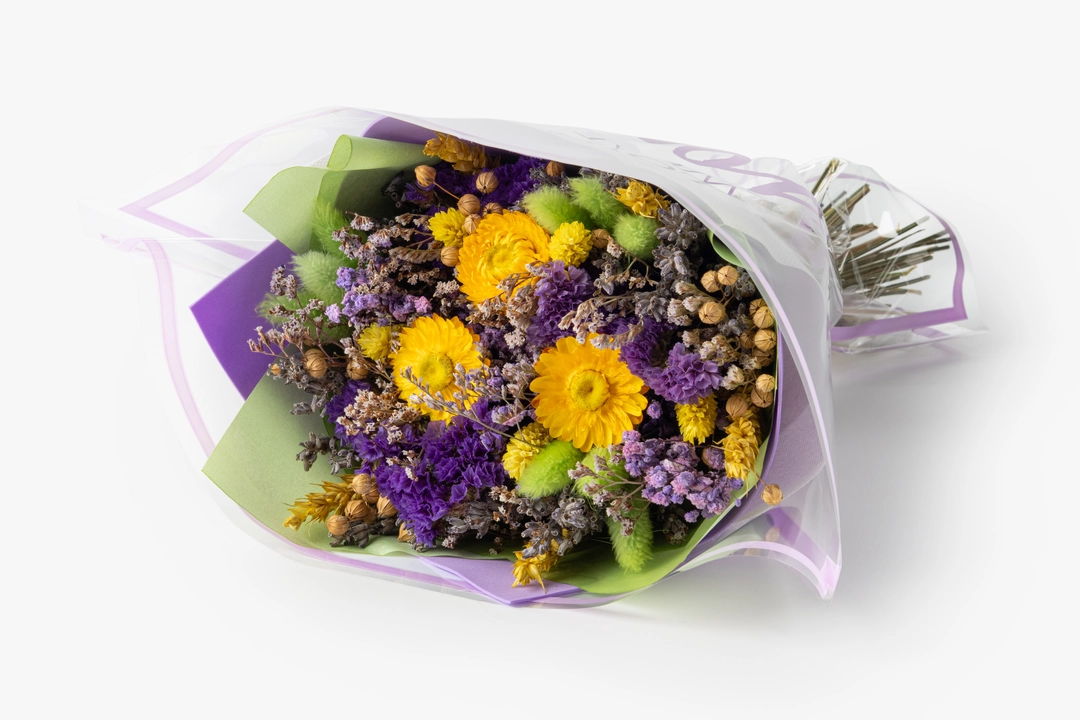 Хрупкая красота цветущих полей, оформленная в утончённый букет. Он не требует ухода и будет радовать вас не один год, привнося в домашнюю атмосферу ещё больше уюта. Букеты могут отличаться по цветовому оформлению, ведь каждый из них уникален и собирается вручную. Для доставки будет выбран случайный вариант.