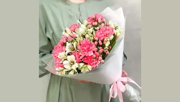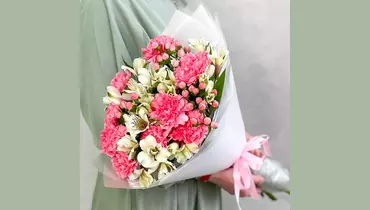 Букетик Розовая волна с альстромерией и гвоздикой FMART by flowwow