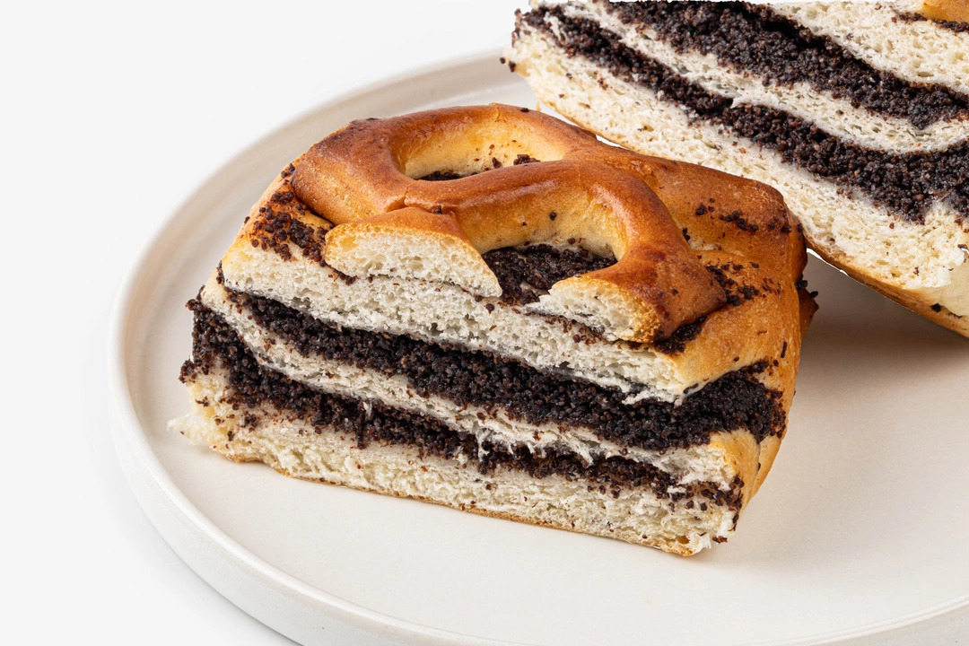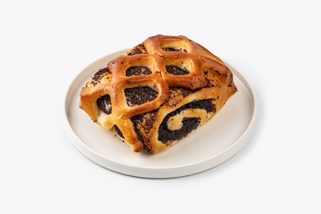 Мягкая дрожжевая булочка приготовлена с маковой начинкой. В ней тесто на сливочном масле и молоке получается нежным и воздушным. А мак распределен равномерно, его количество достаточное — не перебивает вкус выпечки, но хорошо ощущается. Булочка достаточно большая, хорошо подойдет к чаю или кофе. Традиционная выпечка без излишеств — простая, вкусная и именно такая, как ожидаешь от классической булочки с маком.