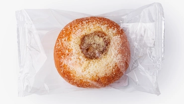 Пышная пшеничная булочка на кефире с ванилью, выпеченная по домашнему рецепту. В серединке начинка из яблочного джема. Сверху выпечка посыпана традиционной сладкой крошкой.