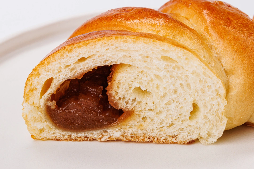 Пышная сдобная булочка с яблочным повидлом. Тесто приготовлено на сливочном масле и молоке, с однородной мягкой текстурой. Начинка из яблочного пюре с легкой кислинкой.