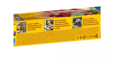 Особая двусторонняя силиконовая бумага (белого цвета) предотвращает пригорание и прилипание выпекаемых изделий к противню и дает возможность готовить без применения масла. В упаковке 12 листов обеспечивают удобство применения, оптимальная ширина листа подходит для стандартного противня духовки 36 см. Внимание: размер бумаги не должен выступать за пределы противня. Жаростойкость бумаги позволяет легко готовить вкусные блюда при температурном режиме до 220 гр С. Жиронепроницаемость помогает сохранить чистоту вашей кухни и духовых шкафов при приготовлении мясных блюд, выпечки и много другого. Воздухопроницаемость позволяет продуктам «дышать». Может быть использована не только для выпечки и запекания в духовке, но и для размораживания и разогрева продуктов в микроволновых печах, порционной упаковки, хранения и замораживания, раскатывания теста без муки и декорирования блюд. Страна-производитель Чехия/ Китай