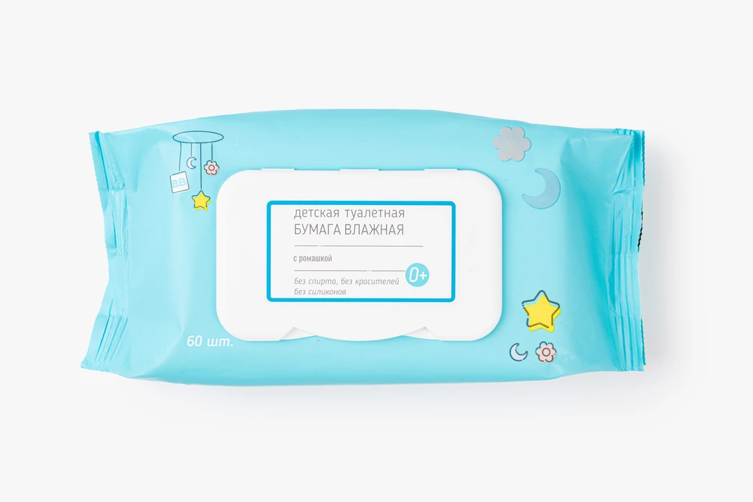 Бумага туалетная детская влажная с ромашкой, 60 шт