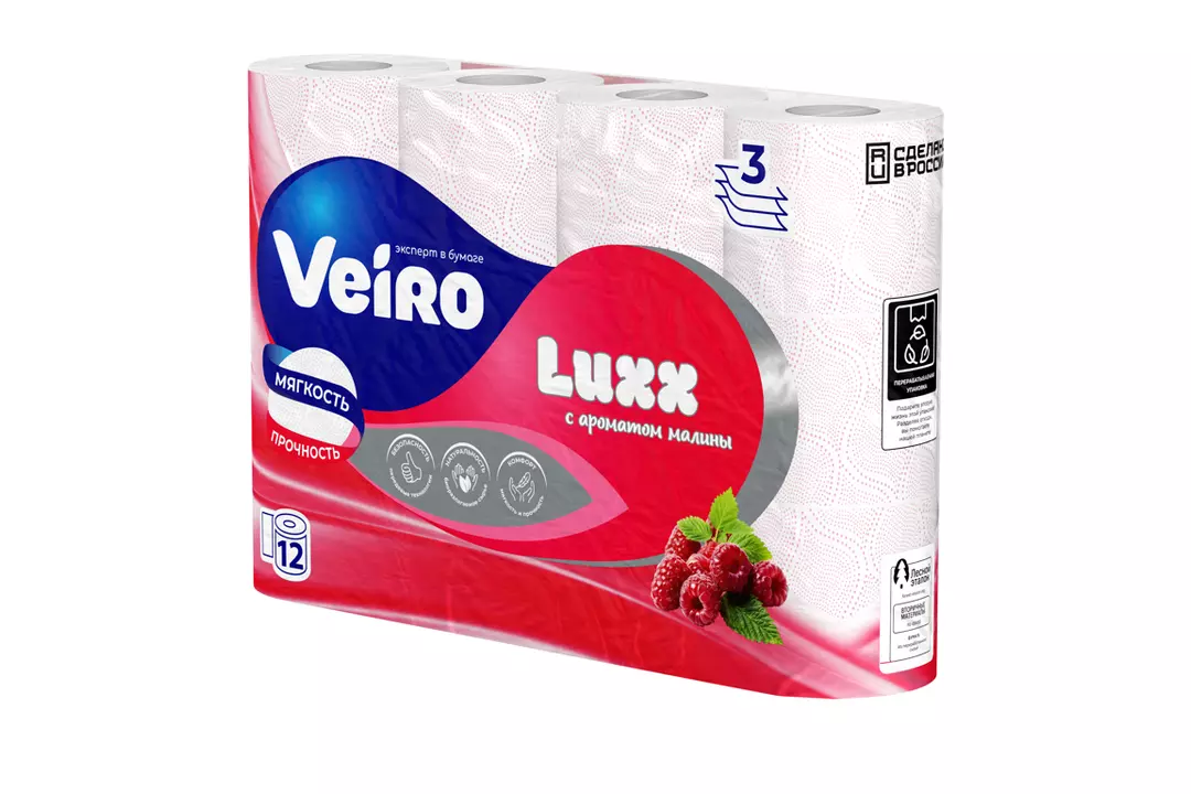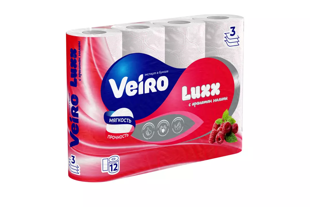 Бумага туалетная Veiro Luxoria с ароматом малины белая 3-слойная 12 рулонов / Супермаркет