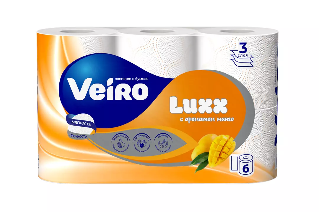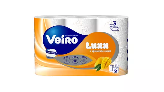 Бумага туалетная Veiro Luxx с ароматом манго 3-слойная 6 рулонов