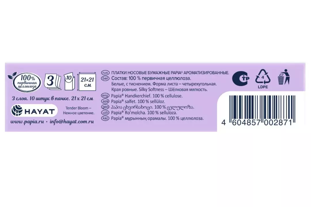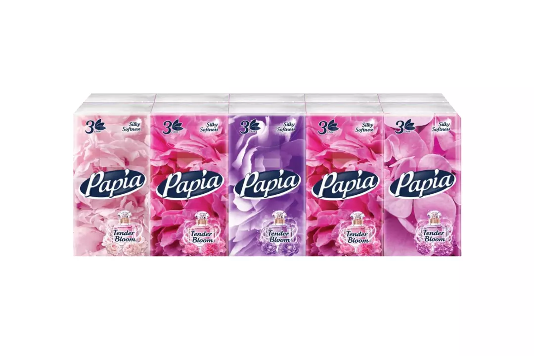 Бумажные платочки Papia Tender Bloom ароматизированные 3-слойные уп/10 шт / Супермаркет