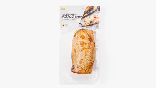 Домашняя буженина из куриной грудки с аппетитной золотистой корочкой и яркими пряными нотками. Мясо томлёное, сочное, с деликатной текстурой и лёгкой сладостью от натурального маринада. Восточные специи и барбекю-ноты создают сбалансированный вкус с едва уловимой остринкой. Такая буженина хороша и в горячем виде с овощным гарниром, и в холодном — для бутербродов, мясной тарелки или лёгких салатов. Попробуйте подать с горчичным или клюквенным соусом для контраста.