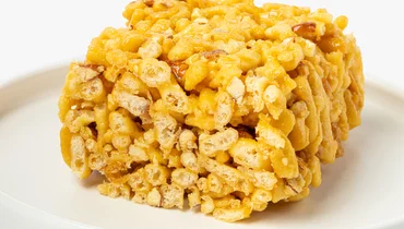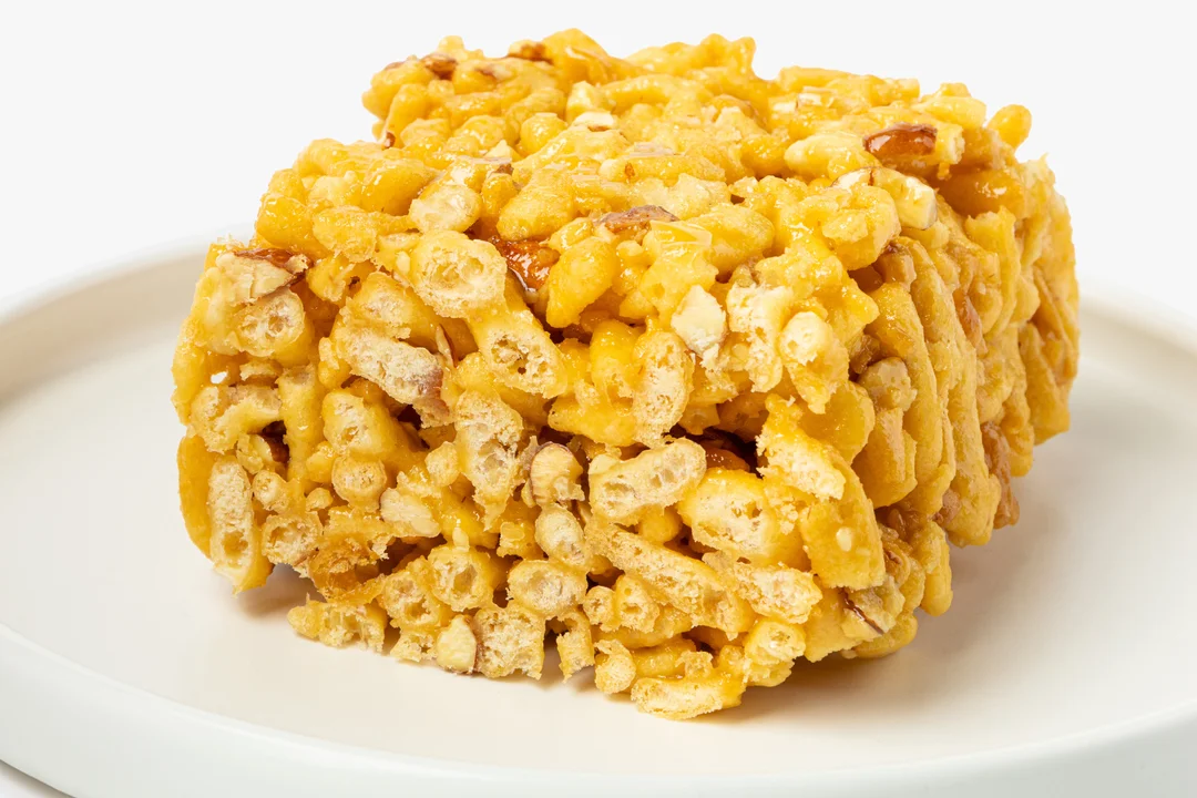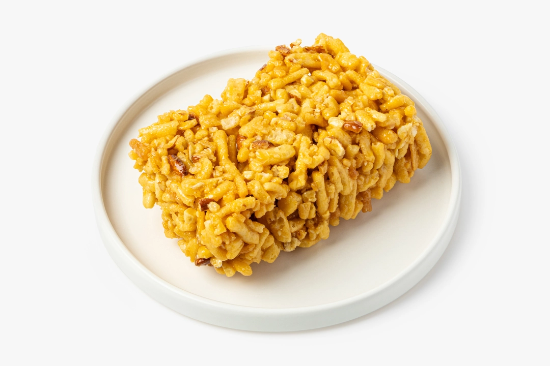 Хрустящие кусочки теста, обжаренные в масле до золотистого цвета, щедро политы мёдом и перемешаны с солёным миндалём. Топлёное масло добавляет мягкий сливочный оттенок с лёгкими ореховыми нотами, а миндаль вносит приятный солоноватый контраст, который оттеняет медовую основу. Каждый кусочек пропитан равномерно. Хорошо сочетается с крепким чаем, который помогает сбалансировать насыщенную сладость