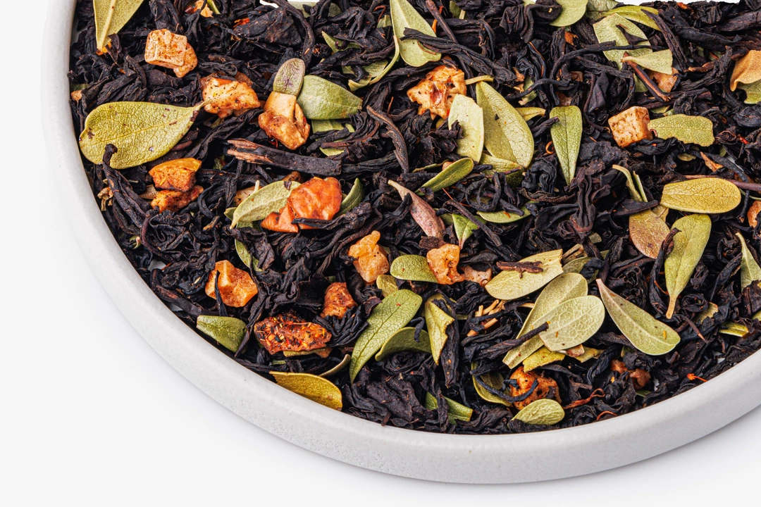 Аромат этого чая объединяет сочность персика и лёгкую терпкость айвы. В основе — крупнолистовой чёрный чай, к которому добавлены кусочки сушёного ананаса и яблока. Они придают мягкую фруктовую сладость, а лепестки сафлора и лист толокнянки дополняют букет мягкими травяными нотами. Напиток получается ярким и многослойным: сначала ощущается спелый персик, потом свежесть айвы и лёгкая кислинка яблока. Хорошо подходит для дневного чаепития — особенно в паре с бисквитом или медовыми десертами.