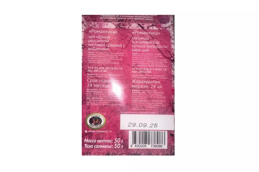 Чай черный FruTea Романтика с ягодами вишни среднелистовой 50 г / Супермаркет