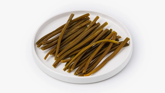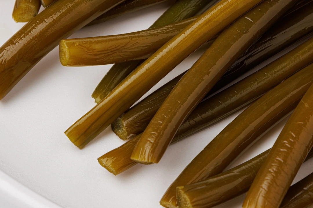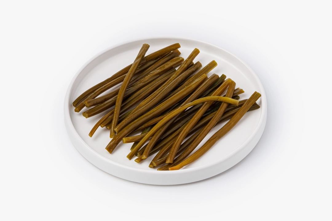 Молодые стрелки чеснока в лёгком рассоле с небольшим количеством соли и воды, чтобы сохранить характерный вкус и аромат зелени без излишней резкости и остроты. Стебли получаются плотными и слегка хрустящими. Продукт хорошо дополняет салаты, мясо и украсит сытные бутерброды. Умеренная солёность позволяет использовать черемшу как самостоятельную закуску. Её оценят те, кто любит добавлять в блюда яркие и необычные акценты.