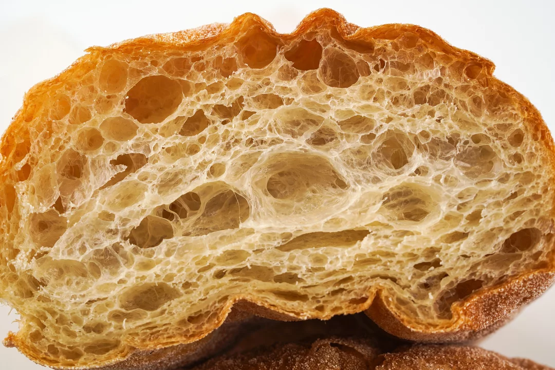 Воздушная чиабатта на пшеничной закваске с лёгкой сладостью мёда. Мы приготовили тесто из пшеничной мушки с добавлением манной крупы, чтобы мякиш получился пористым и упругим. Это альтернатива привычному хлебу к первым и горячим блюдам и универсальный продукт для тех, кто ценит простые и натуральные ингредиенты.