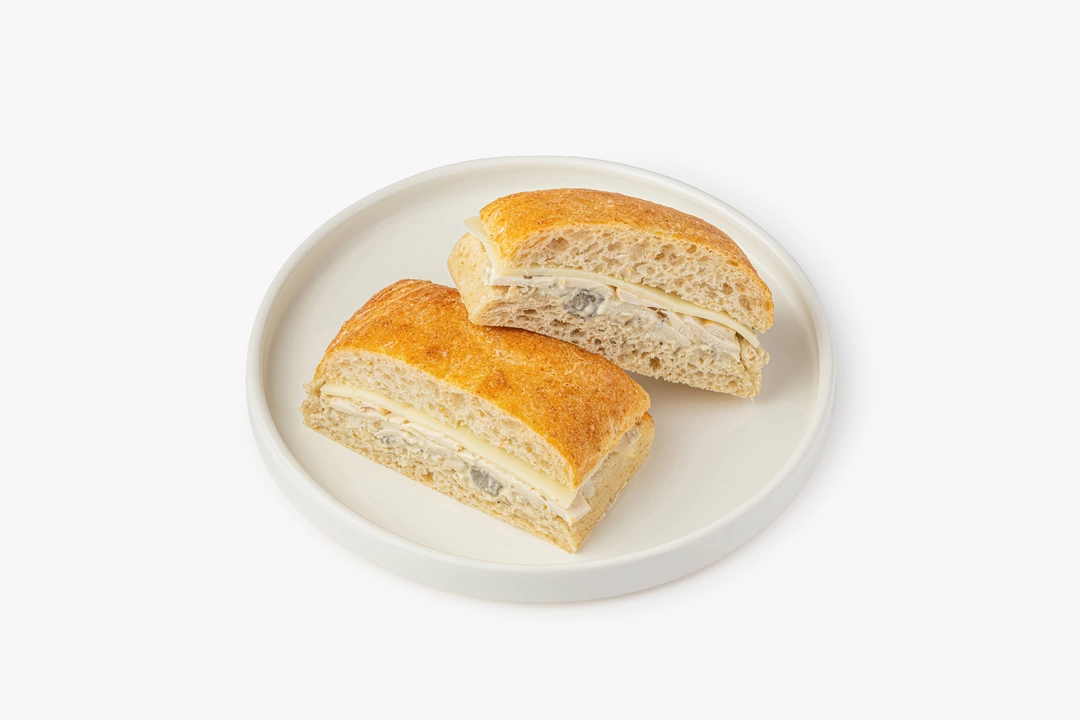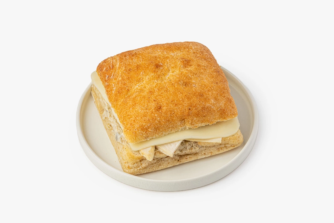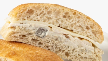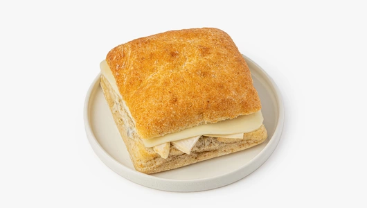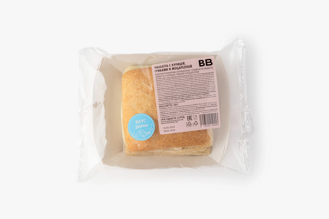 Сэндвич из воздушной чиабатты с аппетитной начинкой — новый вкус этой зимы. Внутри булочки с пористым мякишем варёно-копчёная куриная грудка в сливочно-грибном соусе из свежих шампиньонов и белых грибов. Мягкая и тягучая моцарелла добавляет начинке нежный оттенок. По желанию сэндвич можно слегка подогреть в тостере или духовке, чтобы корочка хлеба снова стала хрустящей. Это быстрый и вкусный вариант для обеда на работе или в дороге.