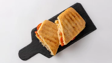 Сытный сэндвич на пышной чиабатте с тающей во рту курицей су-вид, питательным омлетом и тягучей моцареллой. Приправлен душистой майонезно-горичной заправкой, которая добавляет ему лёгкой пикантности и подчёркивает вкус основных ингредиентов. А чтобы было ещё вкуснее, поджарим сэндвич на гриле до хрусткой корочки. Блюдо доступно только для самовывоза из офлайн-точек Сгоряча. Его тоже можно выбрать Любимым продуктом и покупать с приятной скидкой.