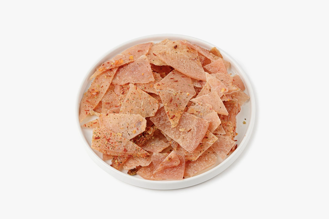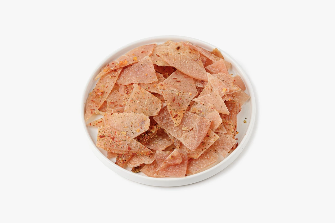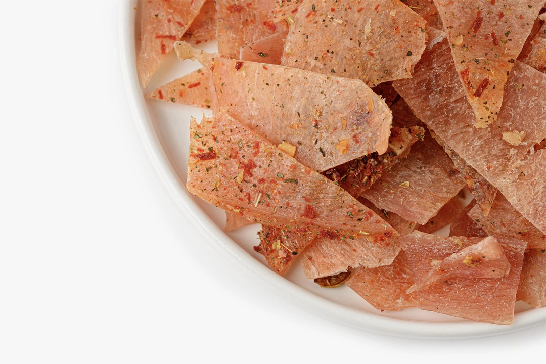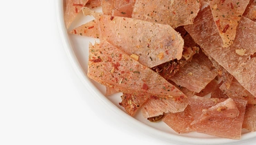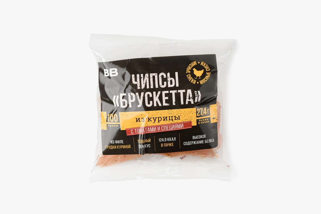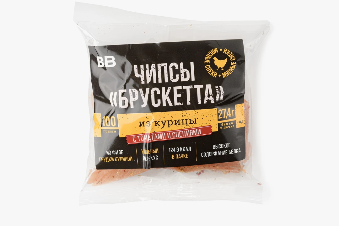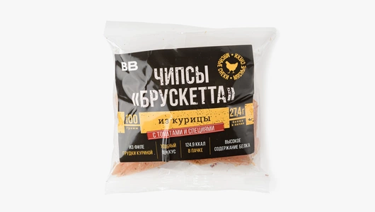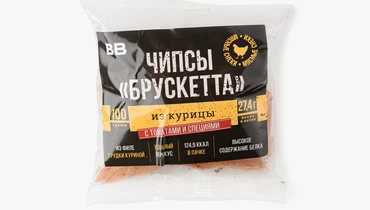 Хрустящие ломтики из куриной грудки в стиле итальянской брускетты сохраняют нежную текстуру благодаря щадящей сушке. Томаты, чеснок и букет средиземноморских приправ придают чипсам яркий вкус и выразительный аромат. Упаковку удобно взять с собой в дорогу или на прогулку. В одной пачке содержится 27,4 г белка, поэтому снек может стать питательным перекусом. Продукт оценят те, кто ищет высокобелковую альтернативу привычным снекам.