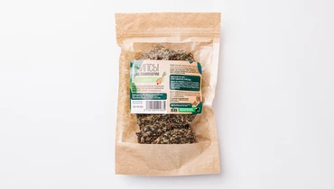 Ламинария — отличная основа для здоровых снеков. Чипсы из неё нежные и хрустящие, с характерным «морским» вкусом, который дополнен ароматным луком, морской солью и чёрным перцем. А благодаря добавлению подсолнечных и льняных семечек, снек получился не только вкусным, но и очень питательным. 100 % натуральный продукт. Подходит веганам. Сушка чипсов производится при 70ºС.